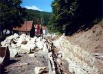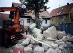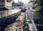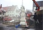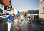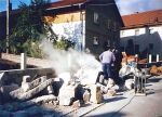 In fünf Bauabschnitten wurde die Haselbachstraße samt Haselbach umgekrempelt. Das bedeutete für die Anwohner fünf Jahre Verkehrsbehinderung, Lärm der Baumaschinen, Ärger und Kosten. Alle Hausgrundstücke bekamen neue Anschlüsse zur Wasserver- und Entsorgung, die Stromleitungen wurden in die Erde verlegt. Viel Erdbewegung war für das neue Bachbett nötig. Tonnenweise wurden große Kalksteine aus Strahlungen für die Randbefestigung angefahren. Grundstücke waren zeitweise überhaupt nicht anzufahren. Das Gedröhne der Presslufthämmer und Staub drangen in die Häuser. Fünf Millionen Mark kostet die Freilegung des Haselbachs, die mit 2,64 Millionen DM, das sind 52,6 Prozent, aus dem Gewässerausbauprogramm des Freistaats Bayern gefördert wurde. Die Kosten der städtebaulichen Gestaltung liegen bei 4,9 Millionen DM. 1,9 Millionen Mark wurden dafür aus dem Europäischen Fonds für die regionale Entwicklung beigesteuert, 400.000 DM Zuschuss gab es aus Landesmitteln. |