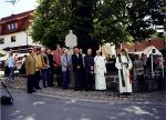 Dorfidylle pur vermittelte das Fest zum Abschluss der Dorfsanierung am 23. Juni 2001, ein strahlender Sommertag unter der alten Dorflinde am plätschernden Lindenbrunnen. Vertreter von Behörden, von am Bau beteiligten Firmen, und die Dorfbevölkerung waren zusammengekommen. An Kreuzbergbier und Bratwurst mit Weck konnte sich jeder laben, so wie er wollte. Die Haselbacher Trachtenkapelle umrahmte mit ihren Darbietungen das Fest. Robert Reder eröffnete es mit seinem Gedicht an Haselbach. Bürgermeister